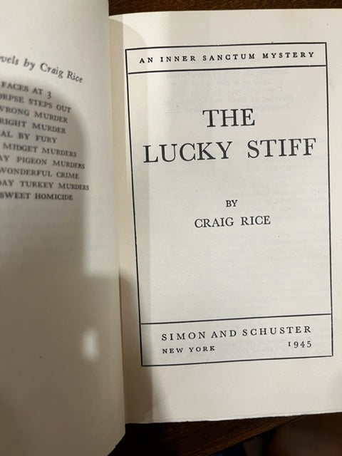 First Edition of Craig Rice's mystery The Lucky Stiff, featuring John J Malone. 1945